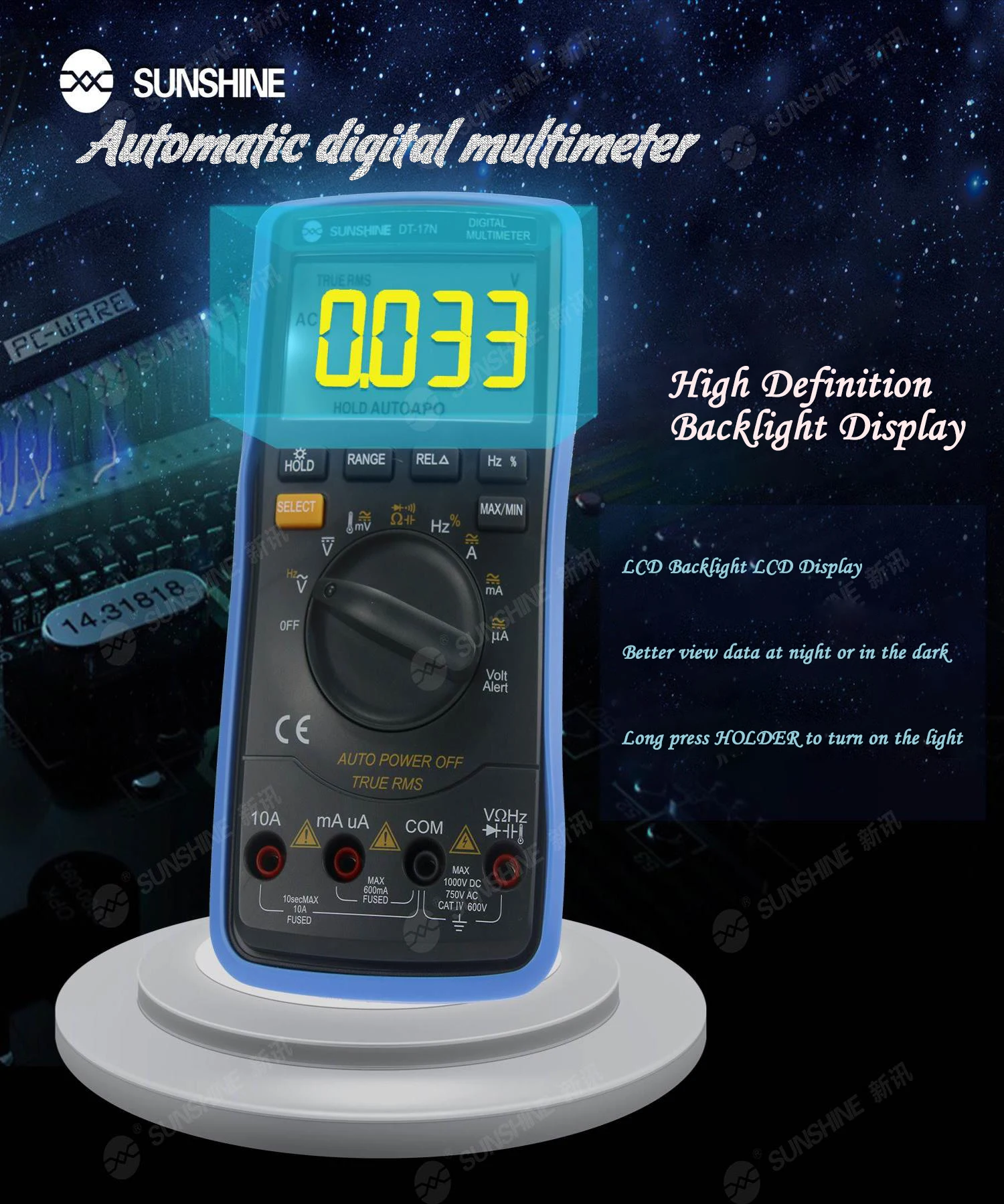 Multimètre de DT-17N de soleil entièrement automatique affichage numérique de haute précision